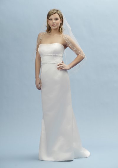 | Silk satin sheath gown with beaded under bust and waist bands. | |
