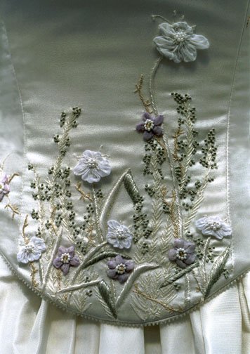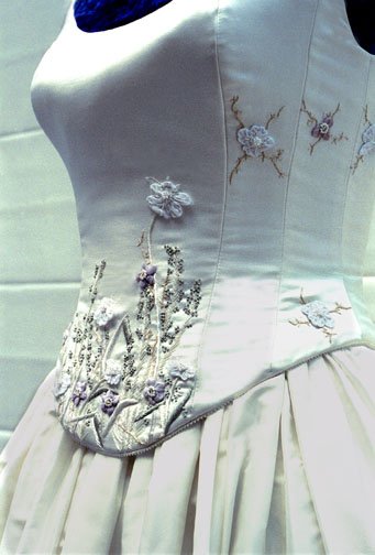 Satin Duchesse Corset with Embroidered and Chiffon Floral Motif |